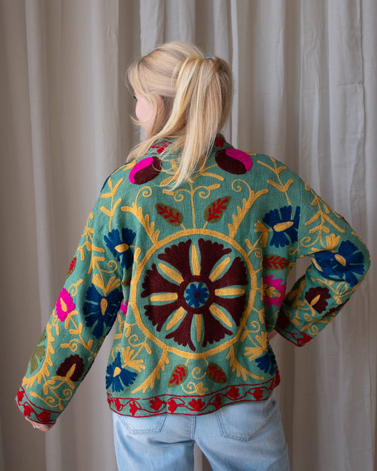 Discover our exclusive embroidered jackets, featuring the most artistic patterns, colors and prints. These jackets are embroidered with love and care by traditional artisans in India. Discover at Vivre which colorful embroidered jacket suits you and give your outfit a personal and authentic touch!