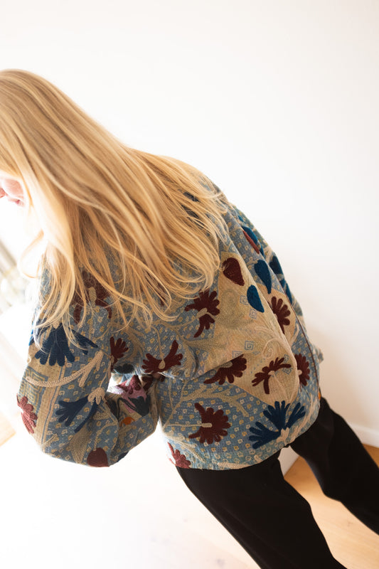 Whether you prefer our kantha jackets, kimono jackets or embroidered creations, each piece has its own unique fit, colours, prints, materials and production methods. Discover below which jacket best suits your personal style!