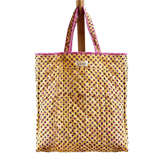 Discover our beautiful collection of reversible bags, handcrafted with love and dedication in India. Each bag is made from recycled vintage fabrics, making them not only high quality, but also extra special. In addition to owning a high-quality bag that can be styled in various ways, you contribute to the local growth and development of small artisan producers in India and to the preservation of traditional techniques!