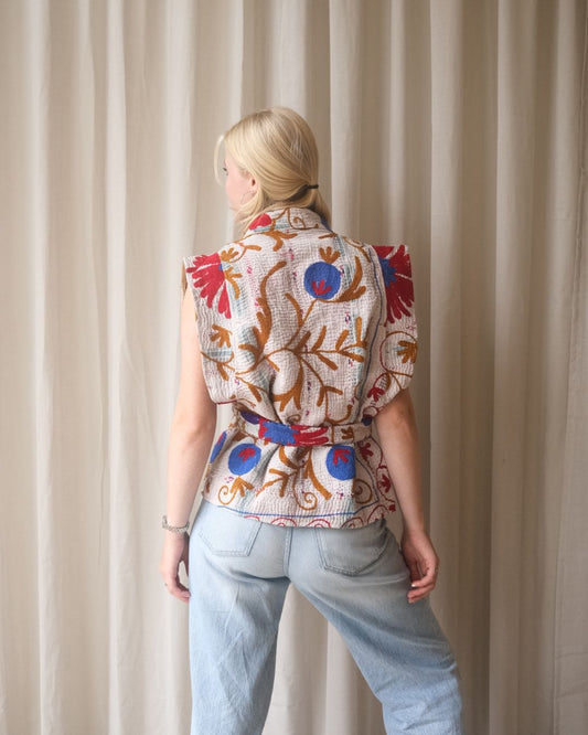 Discover our unique collection of waistcoats with vibrant prints that bring India's cultural heritage to life. Each waistcoat is a unique creation, handmade in India from recycled vintage fabrics such as saris. Also discover our reversible waistcoats , which have different colors and prints on both the inside and outside! Make every outfit shine with a vest from Vivre Jewels
