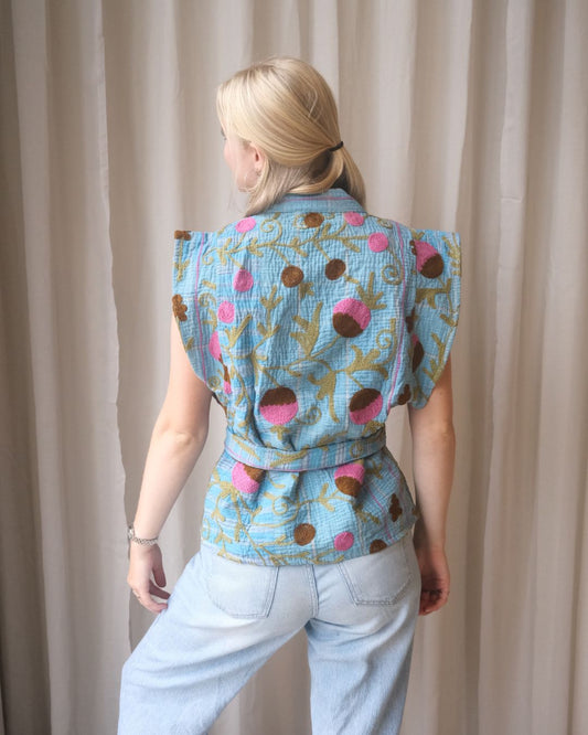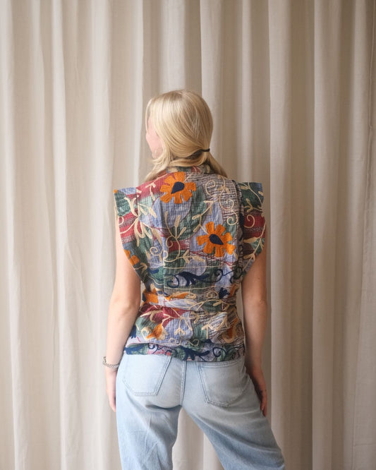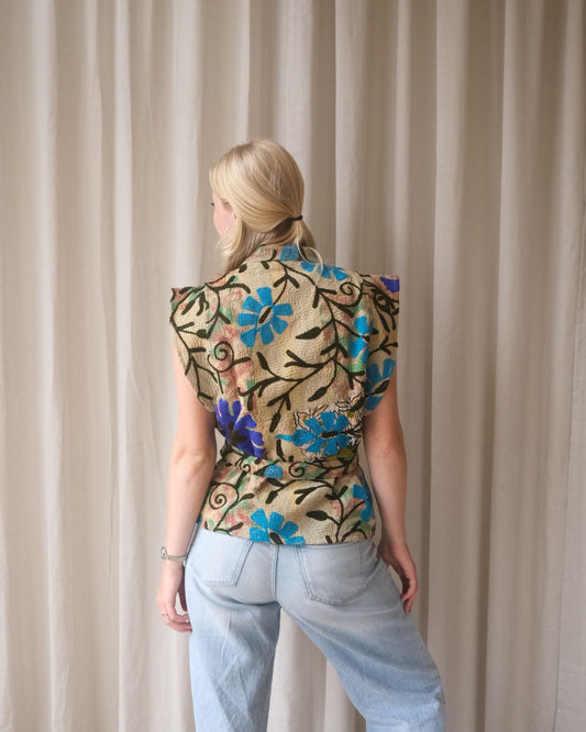 At Vivre Jewels we have a wide collection of waistcoats with beautiful prints . These exclusive waistcoats are handmade in India, using the most beautiful colors and prints. Each piece is made from vintage residual fabrics, including saris, making them truly one-of-a-kind. Our printed waistcoats are made of 100% high-quality cotton or 100% silk and can be perfectly styled with different outfits, such as on a dress, a blouse, a sweater and so on. Take a good look at which size and print suits you and make every outfit unique!