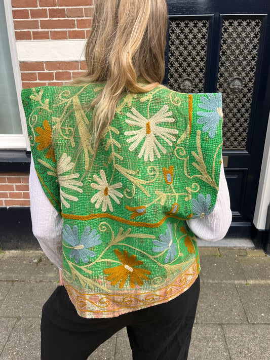 All our beautiful waistcoats are handmade with love by artisans in India. This artisans use authentic residual materials, such as recycled saris, and use age-old traditional methods, including block printing. In addition, the vests are made under good working conditions and at a fair price. By offering these products, we aim to preserve traditional craftsmanship and promote local growth of small craft manufacturers in India