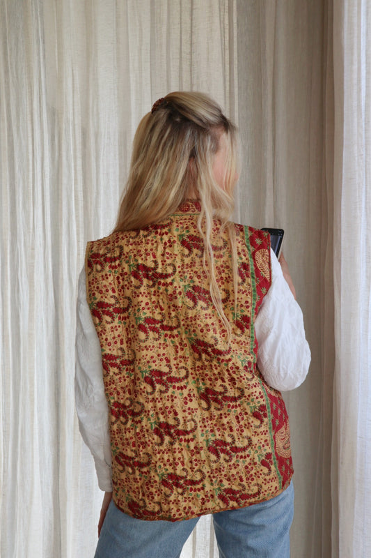 Discover our unique collection of waistcoats with vibrant prints that bring India's cultural heritage to life. Each waistcoat is a unique creation, handmade in India from recycled vintage fabrics such as saris. Also discover our reversible waistcoats , which have different colors and prints on both the inside and outside! Make every outfit shine with a vest from Vivre Jewels