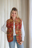 This beautiful vest is handmade in India. With a beautiful print and pockets on both the outside and the inside, you can wear it on both sides. This waistcoat is made from vintage silk saris, so the waistcoats may differ slightly in terms of print, because different pieces of residual fabric are used.